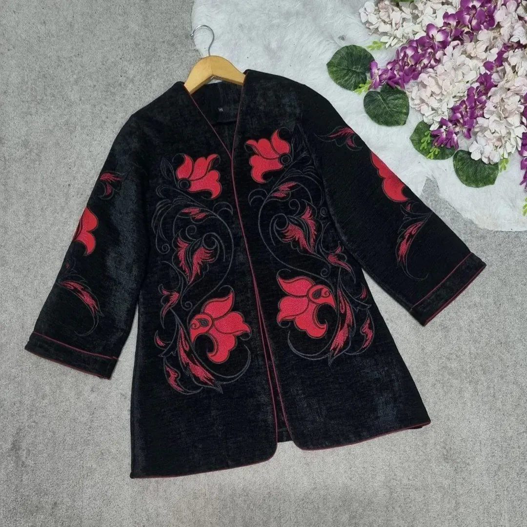 کت مانتویی با جنس مخمل درجه 1 و گلدوزی درجه 1، مناسب برای پوش بهاره و پاییزه. دارای سایزهای مختلف و تضمین کیفیت دوخت و تنخور.