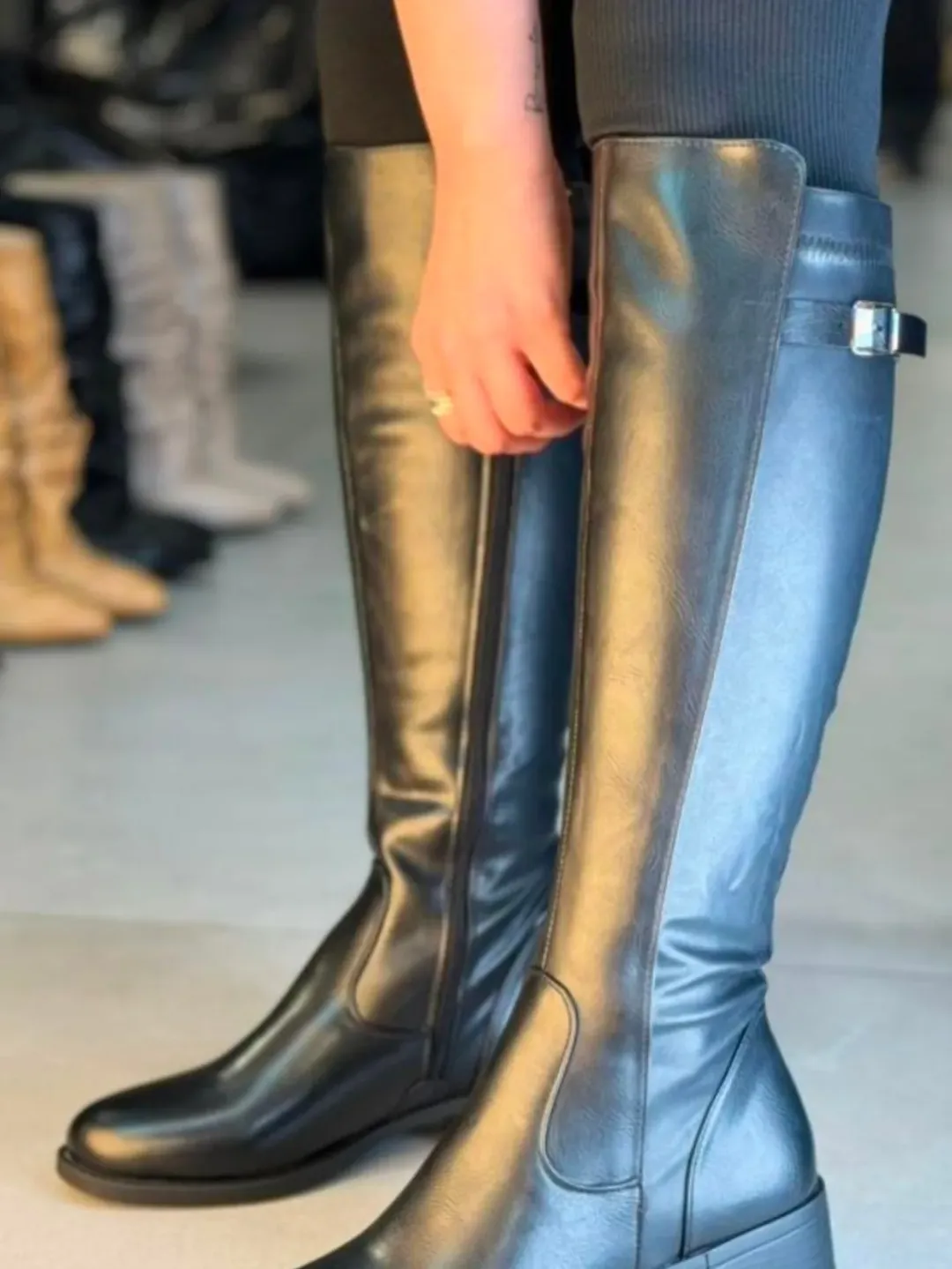 بوت بلند پشت استرج کشی مناسب تمامی ساق پاها بغل زیپ زیره پیو ضمانتی شرکت ایروژا قالب استاندارد ارتفاع بوت با زیره ۴۵ سانت آستر پشم شیشه ای ضد آب واکس خور.